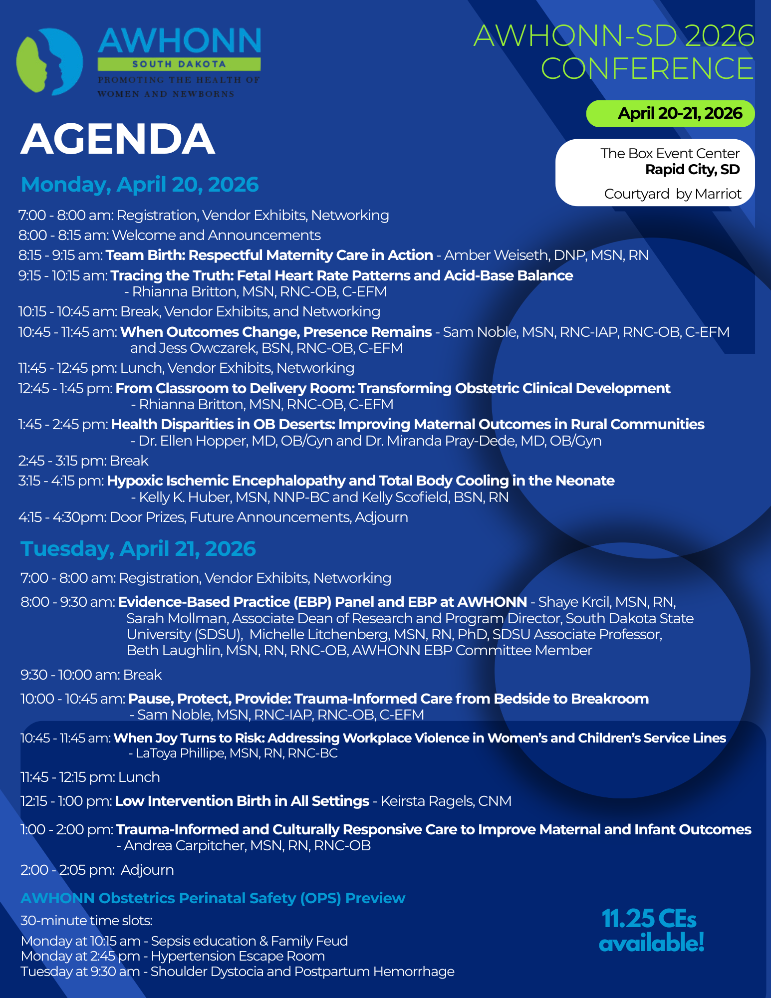 The time is now to register for the 2026 AWHONN South Dakota Conference!!! Click Here!
